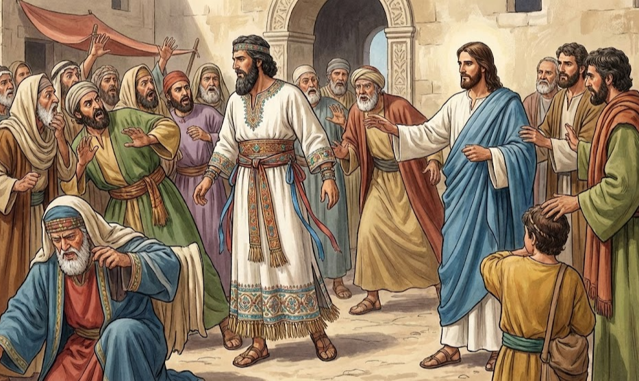 토론은 다른 사람들이 거기에 참여하기 때문에 확대된다. 그리스도의 반대자들이 외친다.
