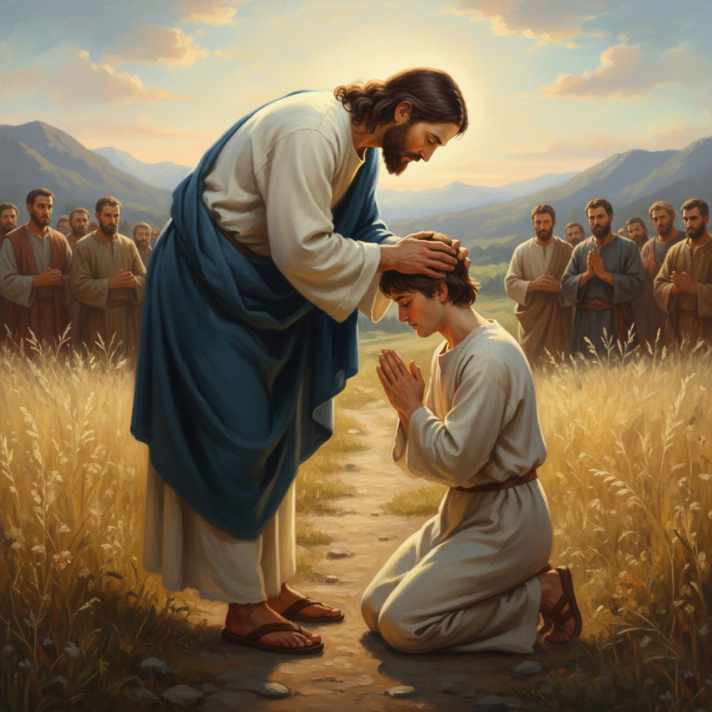 예수께서는 공공연하게는 한 번도 하셨던 적이 없는 몸짓을 하신다. 그분께서는 아벨보다 키가 훨씬 더 크시기 때문에 고개를 숙여 그의 머리를 양손으로 잡으시고 그의 입에 입 맞추시며 말씀하신다.