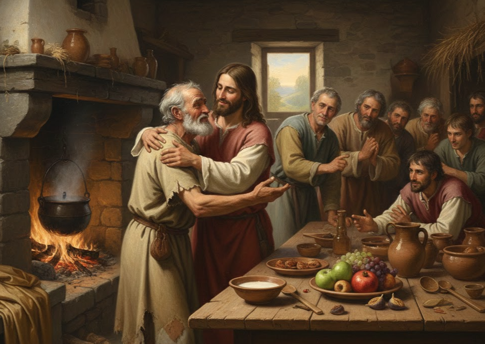식탁에 앉아 계셨던 예수께서는 일어나 그의 양어깨에 팔을 감고 그분께로 끌어당기시며 말씀하신다.
