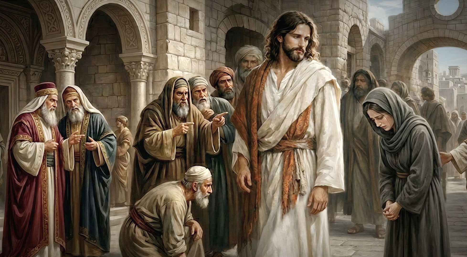 예수께서는 더 이상 그 사람도 다른 사람들도 상관하지 않으신다. 그분께서는 여자에게 말씀하신다.